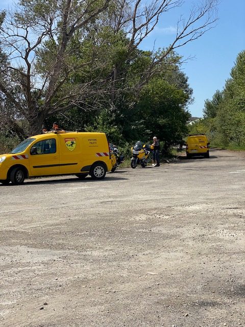 2 motos et 1 voiture pilote nous ont accompagné pour sécuriser le trajet.